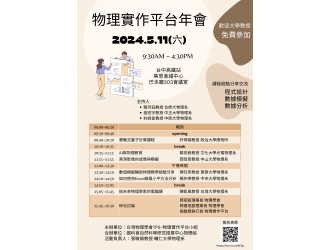 2025物理實作平台委員會議2025台灣物理年會的衛星會議,物理實作平台委員會,2025年1月15日,中午12:00-13:30在國立中山大學SC0012教室,討論三件事。提案一 投稿稿件獎勵金審查與執行,提...查看更多2025物理實作平台委員會議